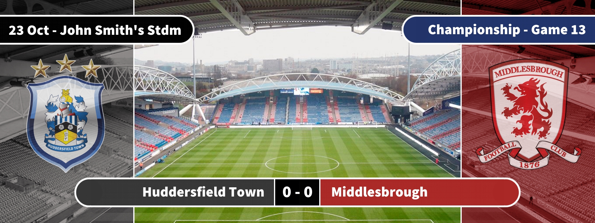 Dani Ayala battled his way past three Terriers to set up an attack and after a throw-in and a desperate Huddersfield clearance the ball came central to Fletcher to force a shot, which went just past the upright on thirty-seven minutes. A minute later and as Wing miscued a challenge in midfield Paddy McNair had to break up an attack and take a Yellow card for his troubles. An over enthusiastic striker’s challenge from Fletcher gave away a free kick 20 yards out with three minutes of the half remaining. A Daikhaby curled free kick cleared the wall as Pears just about got a glove close to his upright but the ball went inches wide. A well worked opening then came to nothing as Boro over passed and over played things and McNair’s effort went over the crossbar Assombalonga style. The whistle went with Boro clearing their lines again to end 0-0.