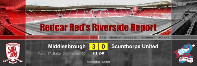 The game started with Boro looking sloppy which is becoming a trademark this season with the Iron having most of the early possession. Boro’s first attempt of note was a bit of a half-hearted build up involving Baker at the end of it before the Ref blew for an infringement in Scunthorpe’s favour. Early impression was that Traore, Fletcher, Tavernier and Baker were relative strangers. Traore darted through the Scunthorpe defence, got to the by-line playing in an enticing ball into the 6 yard box but nobody in Red had anticipated and made a run to meet it.