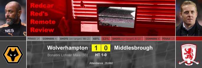 The big shuffling of the pack could bite Monk’s men on the backside if the “bedding in” process became protracted as the green shirted Irons had nothing to lose. Whatever the outcome the game would be decided on the night with no opportunity for a replay. Interestingly there were some cautionary “reinforcements” on the bench in the form of Assombalonga, Gestede, Friend, Gibson and none other than Downing!