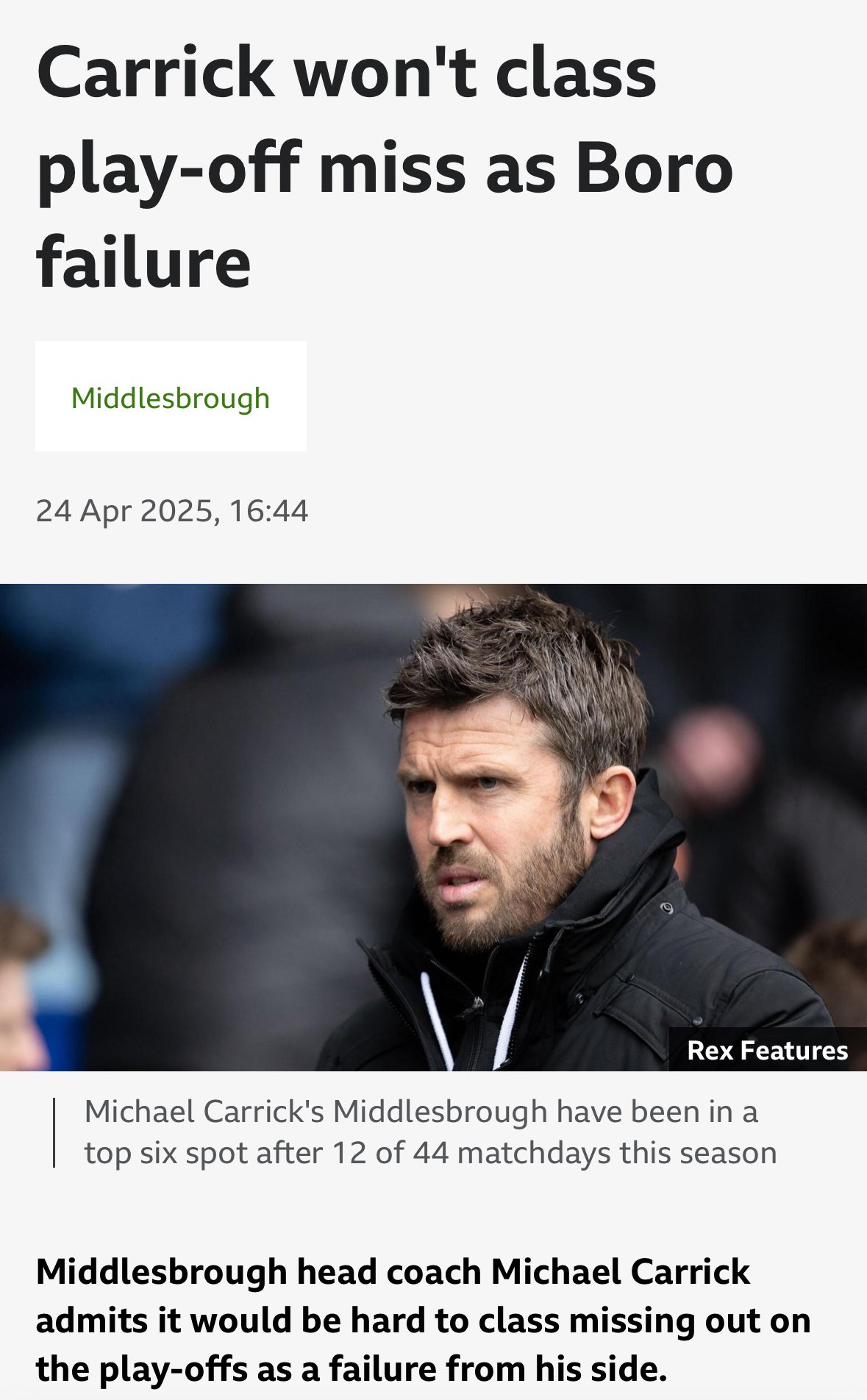 Of course anyone connected to Boro will see not making the play-offs as a failure given it's in their hands with 2 games to go - and in truth should've been sealed long ago given all the missed opportunities.