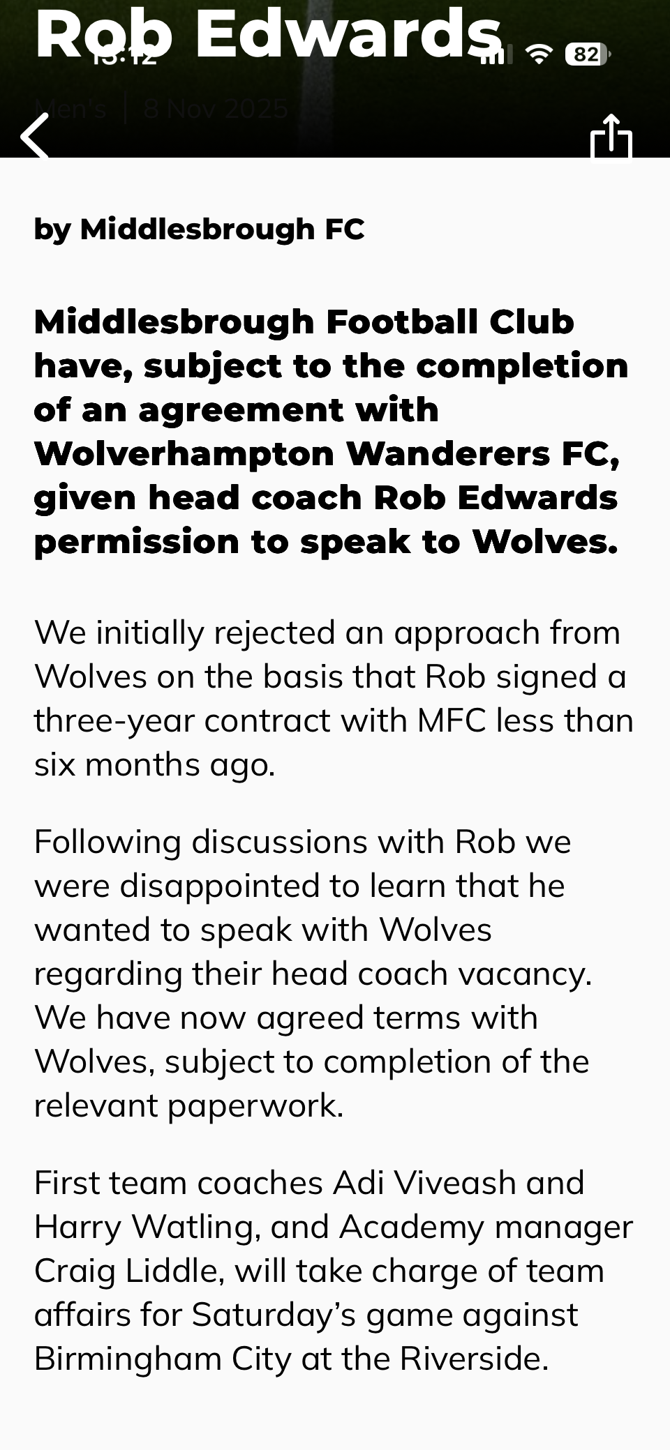 Yes you're right Andy, Edwards just needs to go now with Boro getting full compensation and move on - though the danger for the club is if they give him permission to speak to Wolves, he's finished with the supporters (if he isn't already) and if there's no agreement between Edwards and Wolves then it will be Boro left having to pay off his three-year contract as he won't be in breach if he was given permission to talk. It can only now be resolved by Edwards resigning and walking away to talk to Wolves - though Edwards will be unlikely to resign and risk his financial package until he has a new contract elsewhere - A very messy business...