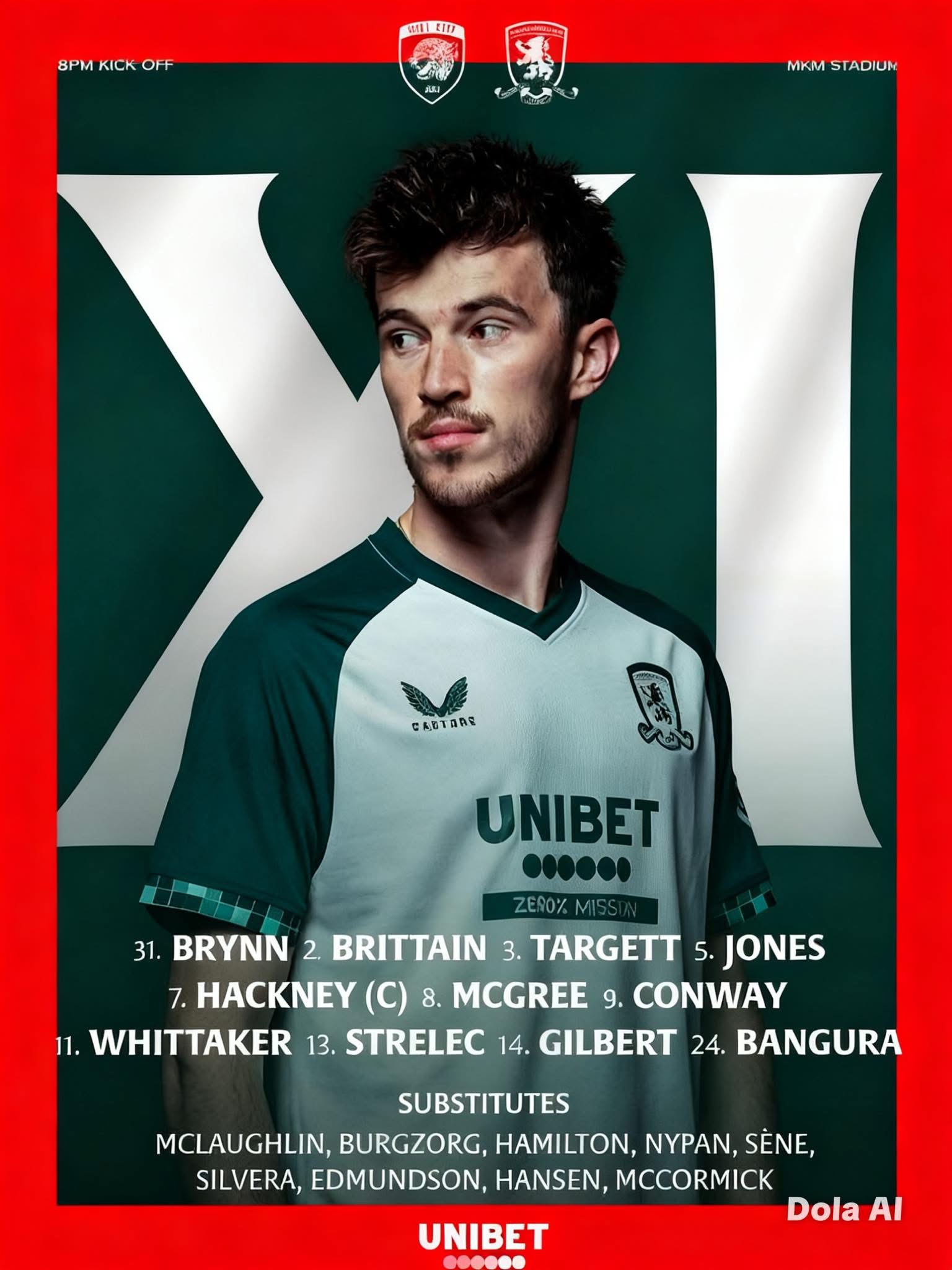 Alan Browne one of the three players taken out of the XI, and he isn't on the bench at all, which is another concern for Boro. He's replaced by Alex Gilbert, who's making his first Championship start since the final day of the 23/24 season. It was on this ground last season that he of course scored that dramatic late winner.